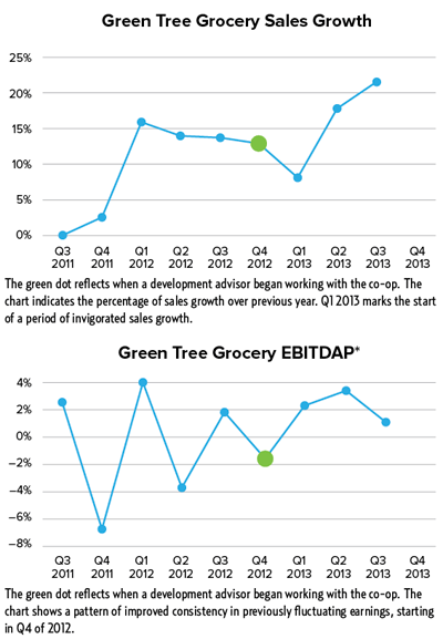 GreenTree Community Co-op in Mt. Pleasant, Mich., contracted with a development advisor in December 2012 to improve MML percentages and prepare the store to open a second location. “The